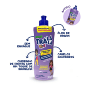 Aplique o Creme de Pentear Trá Lá Lá em quantidade suficiente para todo o cabelo, exceto na raiz.
